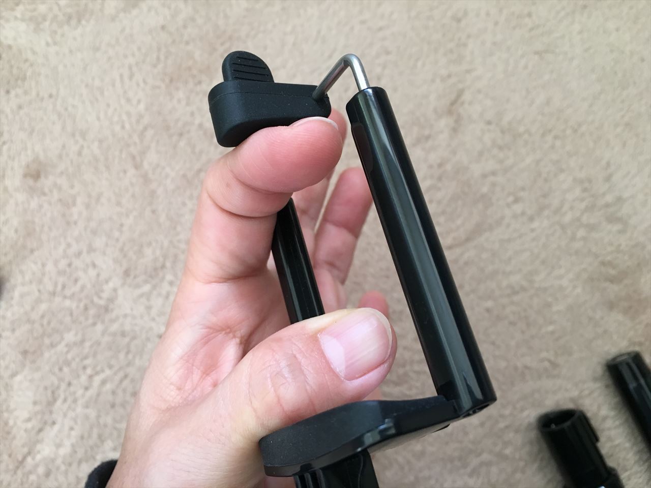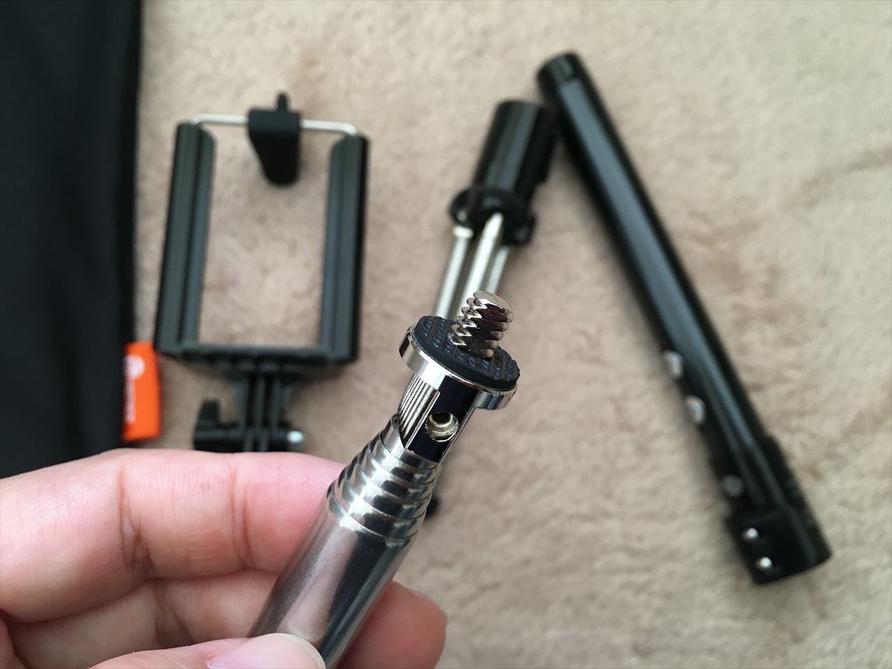 先端は1/4インチネジになっているので、ここにコンパクトデジカメなどを直接取り付けることができ、自撮り棒はもちろん、一脚として使うこともできる。