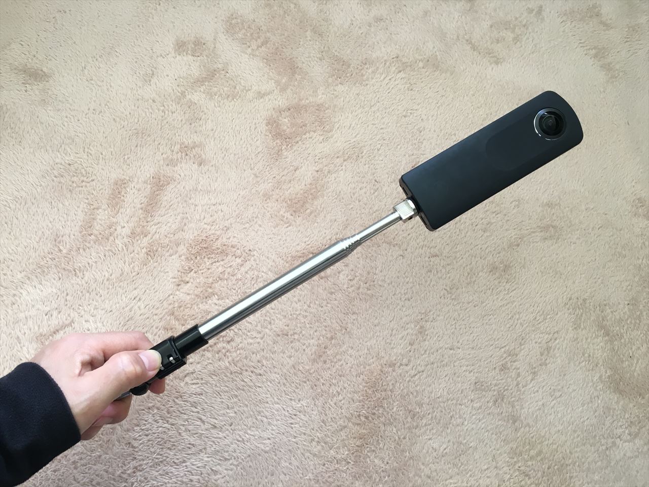 ちなみに自分は、自撮り棒としてはほとんど使っておらず、もっぱらリコー「THETA S」の一脚として使っている。このカメラは360度全方位撮影をしてくれる特殊なカメラなので、自分の顔や体の前で撮影すると自分が「障害物」となってしまうため、頭上に掲げてシャッターを押す必要がある。