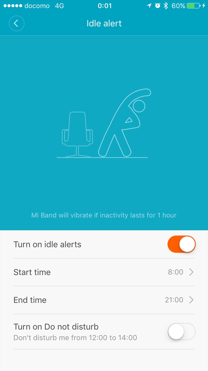 それが一定時間続くと、いきなり腕の「Xiaomi Mi Band 2」がブルッと振動し、椅子に座った人のアイコンが表示される。そしてその人が立ちあがりトコトコ歩き出すのだ。