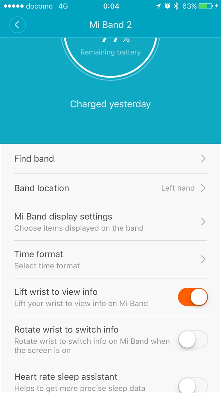 iOSに標準搭載されている「ヘルス」というアプリとの連携も可能で、連携させると「Xiaomi Mi Band 2」で計測した歩数や睡眠時間などのデータを「ヘルス」に引き渡してくれ、他の健康関連のデータと一括管理することも可能。