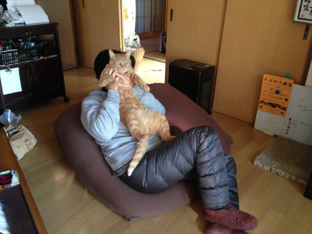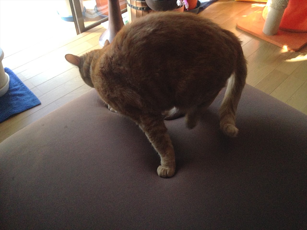 新しもの好きで、何か届くとすぐ絡みついてくる猫がさっそく目をつけた。どこか猫の身体そのもののようなソファの踏み心地が気に入った模様で、しばらくぷにぷにしていた。