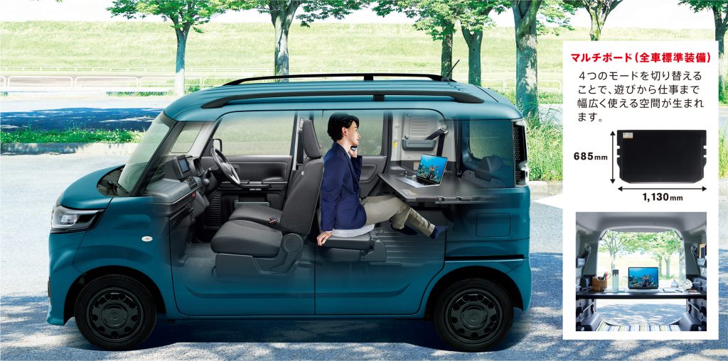 今回自分がスペーシアベースに決めたのは、↑このイメージ写真にバキュンと胸打ちぬかれたからです。これがやりたい!この車があればどこでもオフィスの完成だ~!と。