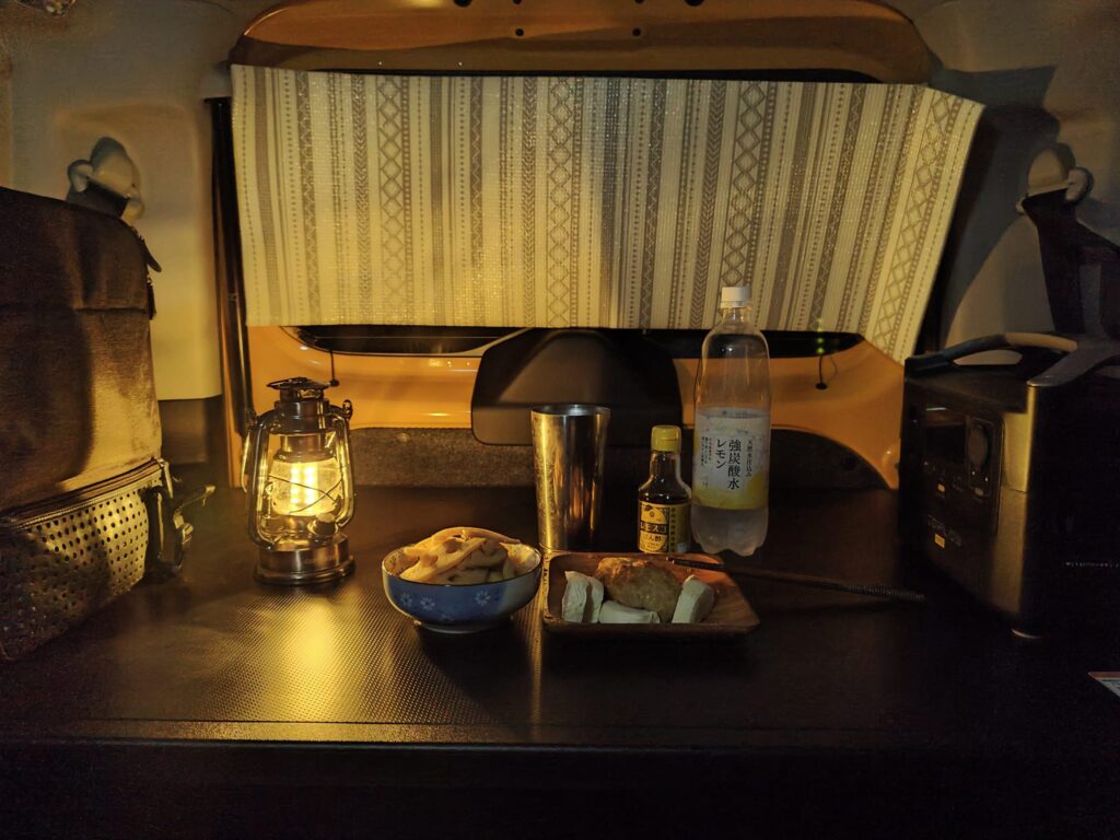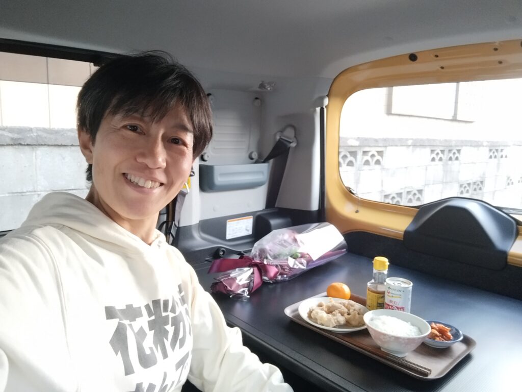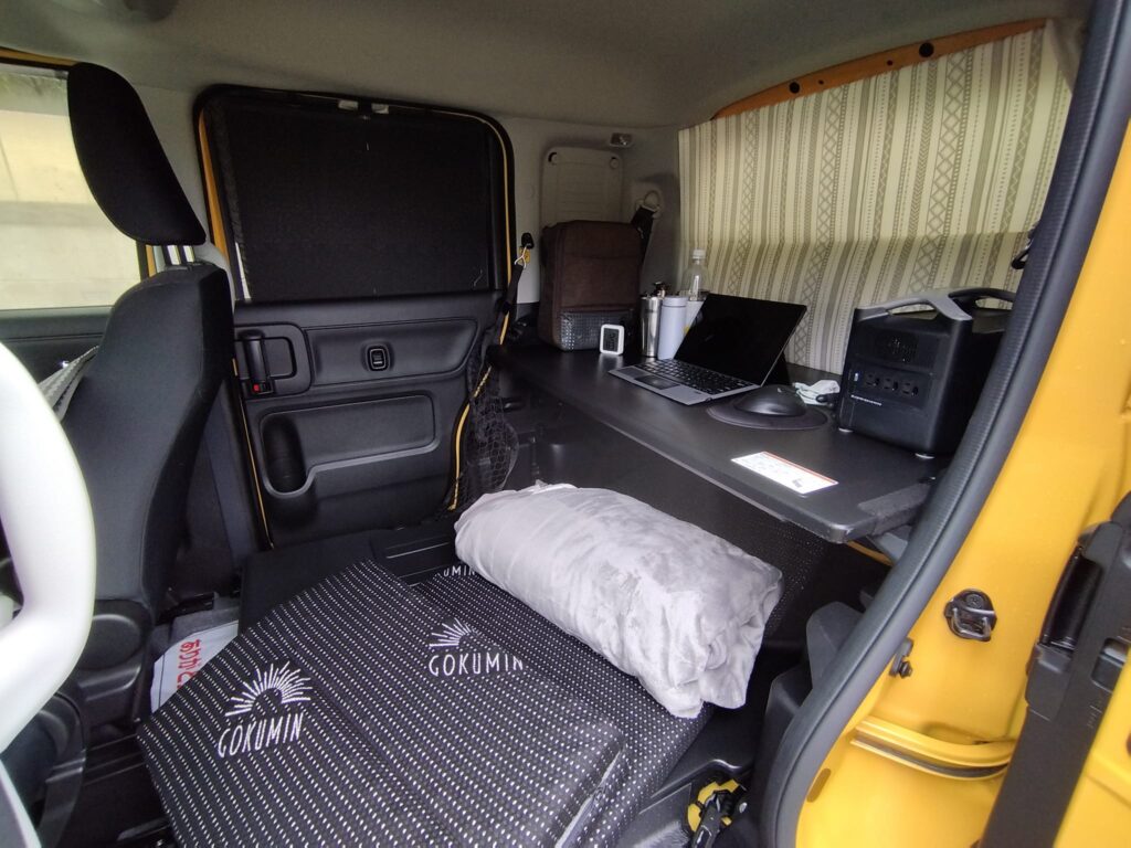 写真を撮りそびれましたが、事前に車中泊用に買っておいた折りたたみ高反発マットレスと手を出せる電気毛布を持ち込んで、この日は車の中で寝ました。