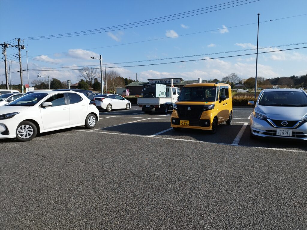 自宅に着く前に少しバックで駐車スペースに停める練習をしておこうと思い、途中の「恋する豚研究所」の第二駐車場に。