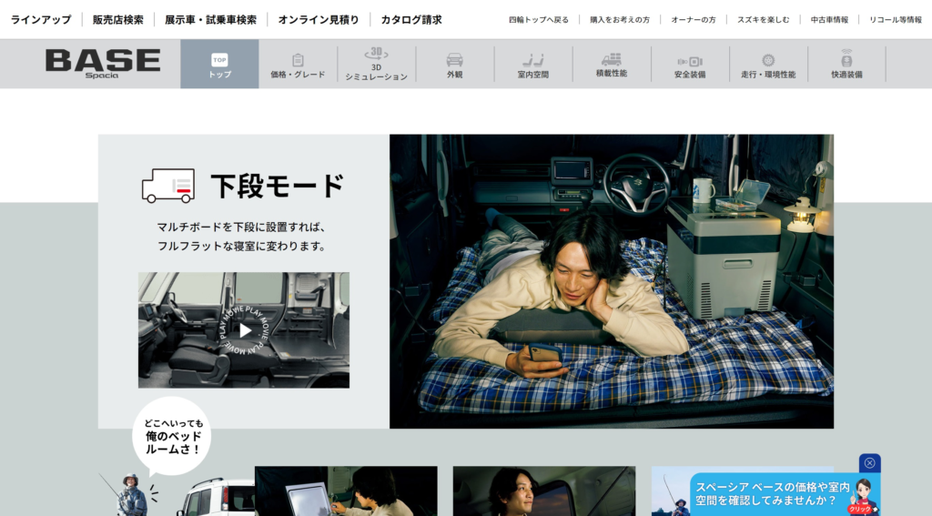 スペーシアベースの「荷室」斜め使いで車中泊
