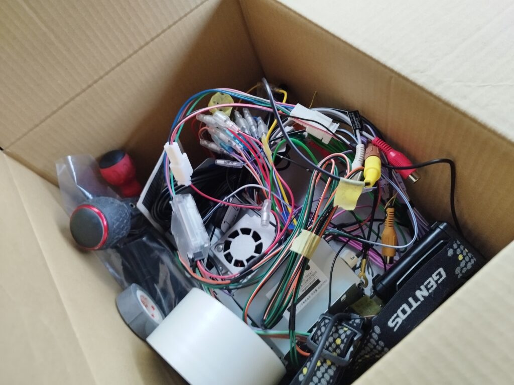 開けると、中からはこんな感じの端子がいくつか。事前に接続作業した際に、「あとはこれを車側の端子と接続すればOK」と思っていたものと、形も同じ。