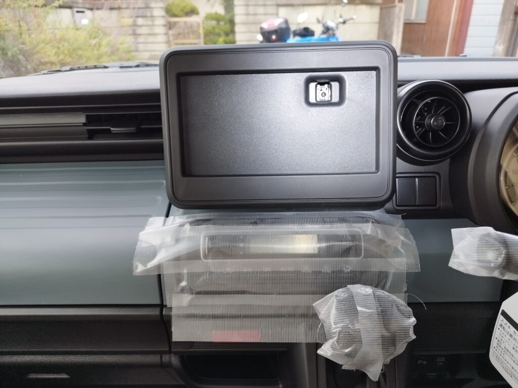 アクセサリー検討でかなり悩まれる方も多いかと思います。私が購入したスズキのスペーシアベースは、元々ディーラーの試乗車だった新古車で、メーカーオプションである全方位モニターは最初からついていましたが、純正ナビはついていませんでした。