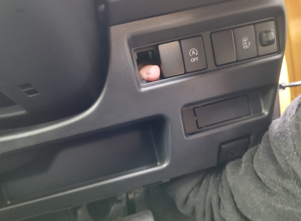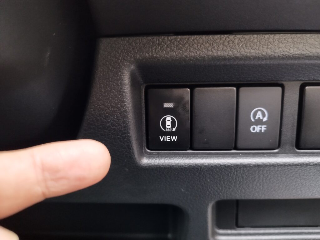 先に全方位モニター映像の切り替えスイッチを取り付けることにしました。後ろから指を突っ込んで、空白のダミーボタンを外します。