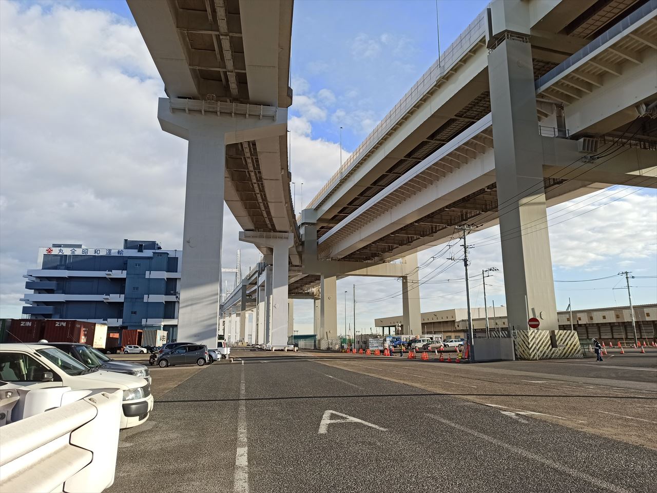 このあたりは、コンテナトレーラーなどが休息をとる場所なのか、公道でもなくコンテナヤードでもなく駐車場というわけでもないなんだかよくわからない広い土地がところどころに点在していました。特に橋の下。