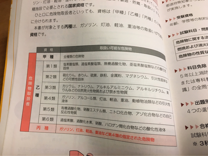 危険物取扱者試験には「甲乙丙」があり、その中で一番やさしくて最も受ける人が多い、ガソリンや灯油、軽油・重油など範囲も限定された試験だ。