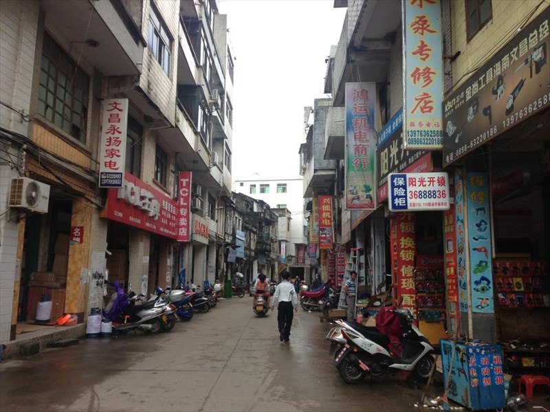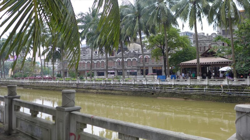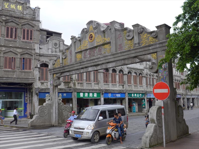 古い通りには「騎楼」といわれる一階部分がアーケード状になった古い様式の建物群がそのまま残っていた。文昌江という川の近くの通り「沿江西路」は昔ながらの騎楼が続いており、ちょっと混沌とした雰囲気には風情がある。