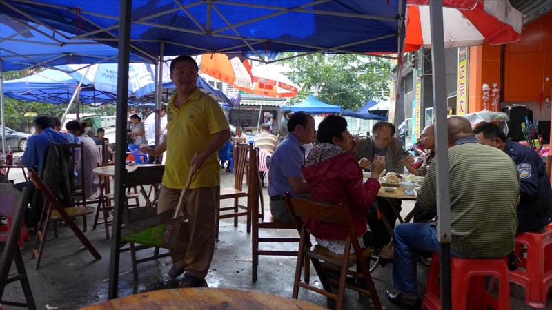 中国の食堂はお客さんが床にゴミやら骨やらぽんぽん捨てるので、結構汚い。いくらなんでもこういう場所でも直接座るのかと思われたら日本人として不本意なので。