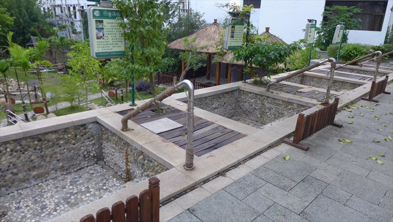 私が入ったのは、4つの小さな湯船が並ぶこのエリアのお風呂。布袋の中にたくさんの漢方の薬剤が入ったものが投げ込まれた。