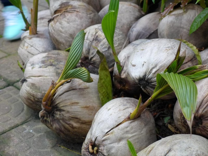 ヤシの木は海南島ではありふれすぎていて特にここでは見所にはなっていないのだが、この発芽したヤシの実が積み上げられている場所がところどころにあり、観光客の写真撮影スポットになっていた。