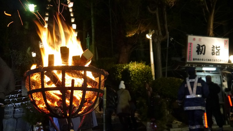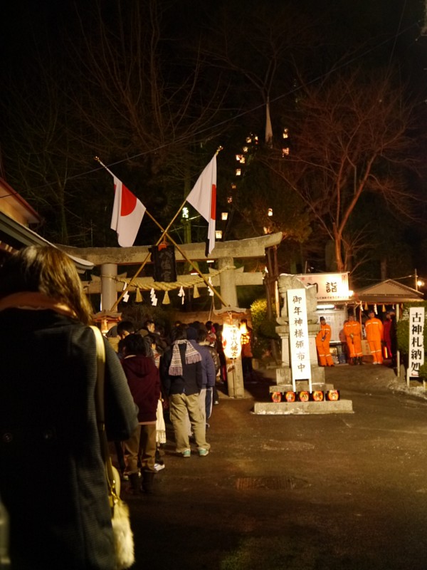 とどぎまぎしたけど、0時になって奥のほうから神楽とか響いてくると、列が動き始めた。一斉にかけあがって混乱したりしないよう、全員ではなく、少しずつ列区切りながら前に進めていた。