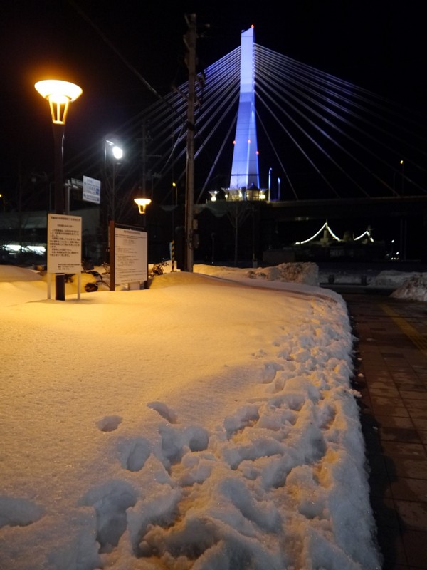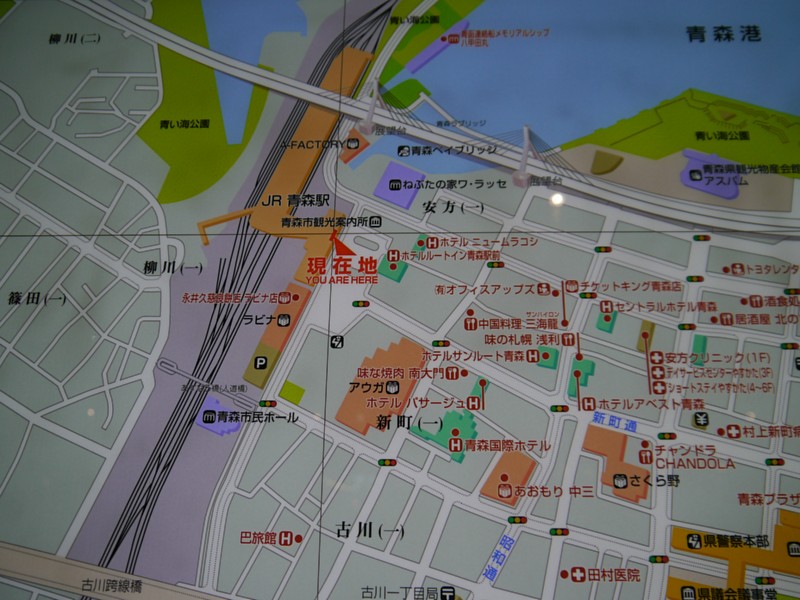 青い森鉄道に乗って青森についたのは21時過ぎだった。途中車体に何かががつんとぶつかり、車体点検と現状確認で30分弱遅れたのだった。自分も衝撃感じたけどあれは鹿か何かだったのかなあ。