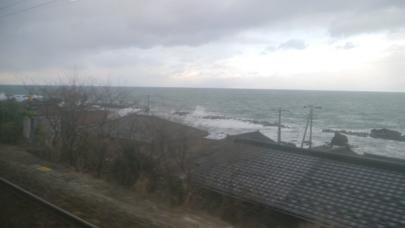 冬の日本海眺めつつ羽越本線で新潟へ