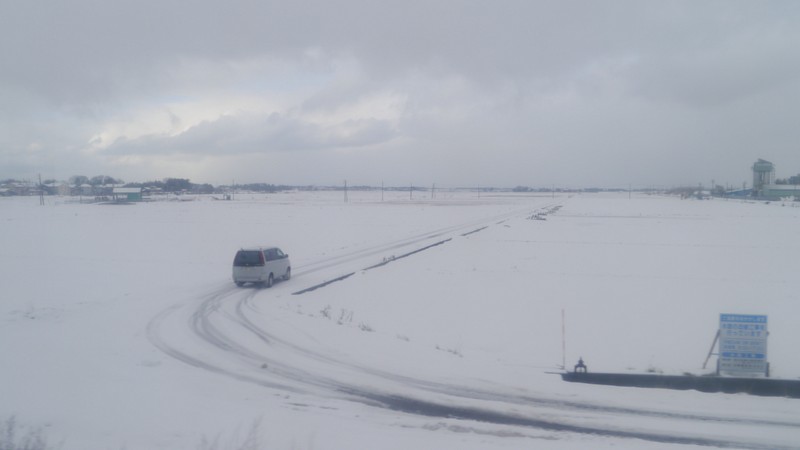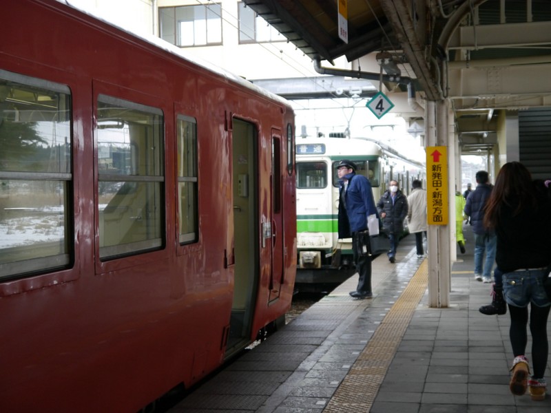 最終日は移動距離も長いので、朝7時の始発列車に乗って新潟に向かった。改札寄りの車両以外は、人も全然おらず、ほとんど貸しきり状態。