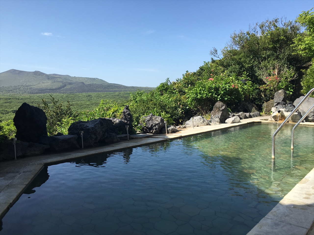 目の前に三原山のすそ野が広がる露天風呂からの展望も最高!