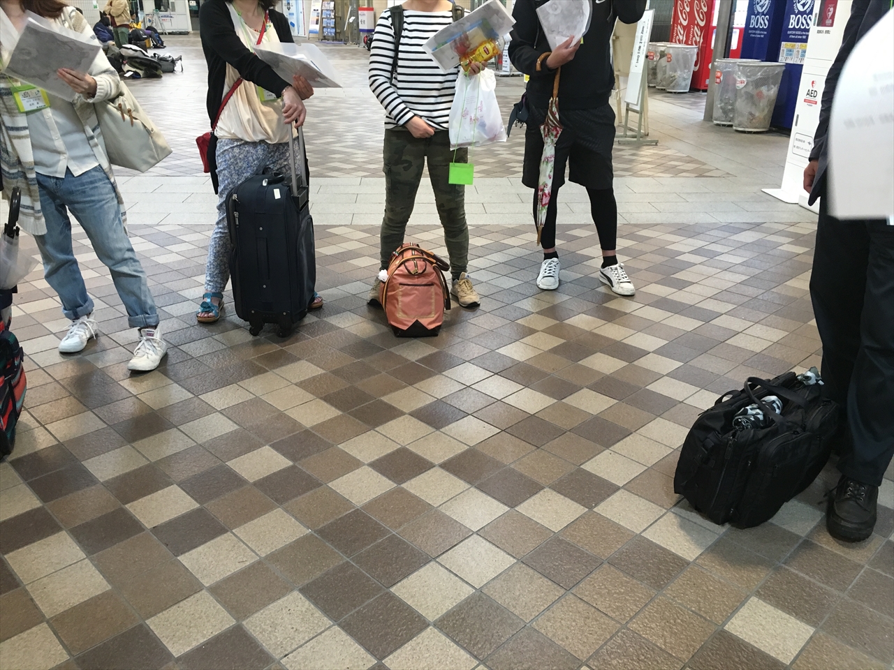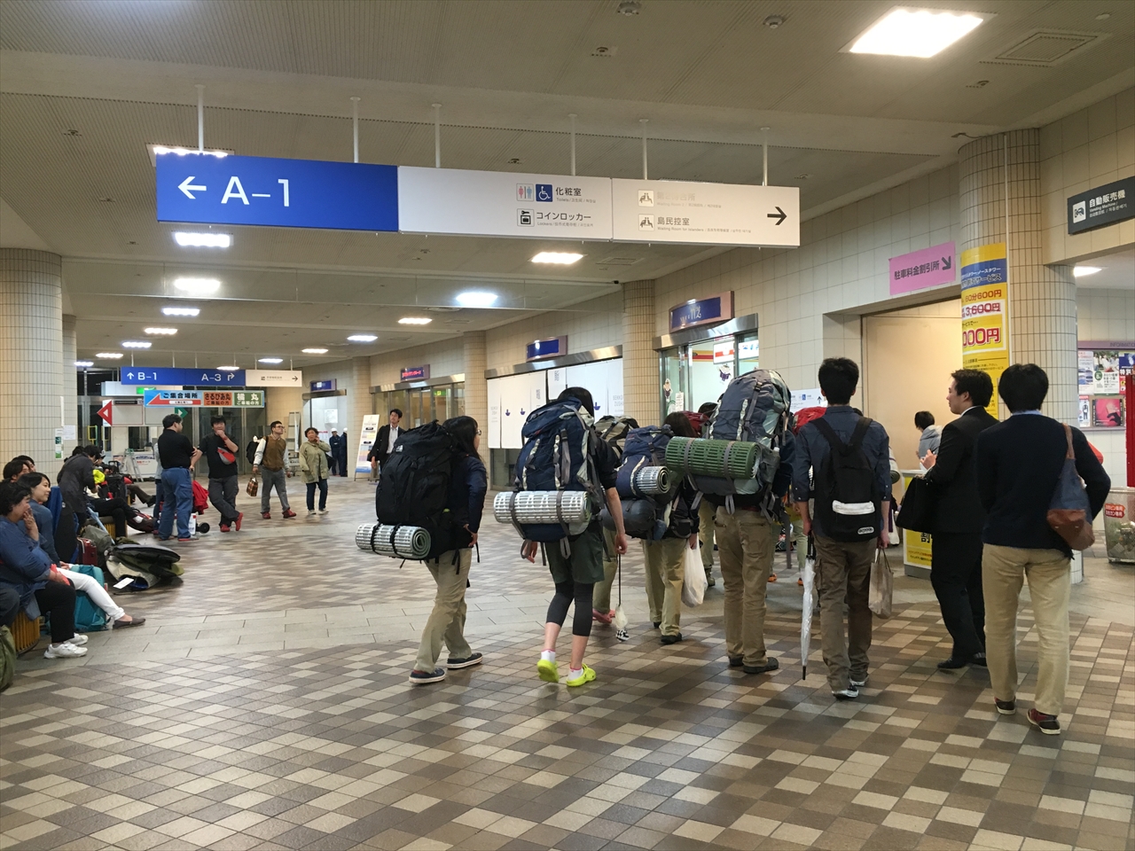 少し早めに到着してターミナル内を歩いていると、ザック背負った若い人たち、釣り道具を抱えたおじさん、そしてそれとは服装もがらり違うサーファーの一群など、それぞれ旅の目的ごとの装備で集まっていて、まさに「旅の始点」。