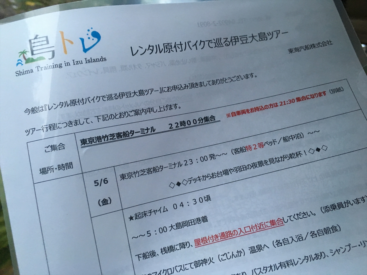 ●5/6~8 大島原付バイクツアー(東海汽船 添乗員の部屋)