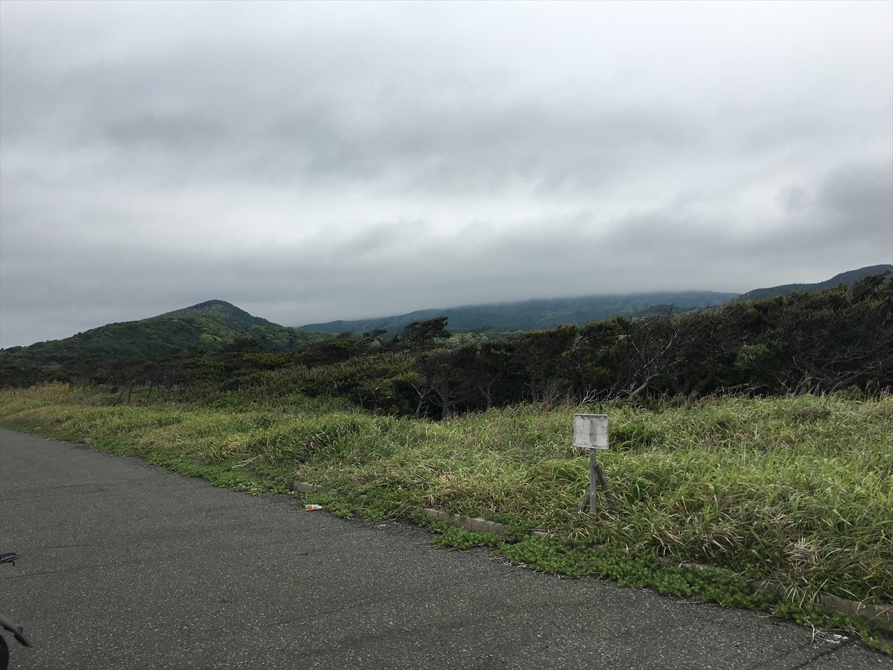 左側にずっと海を眺めながらの気持ちいいルート。直線コースも多く、曇り空ではあったけど、雨にも降られず風も心地よく、なにより開放感たっぷり。