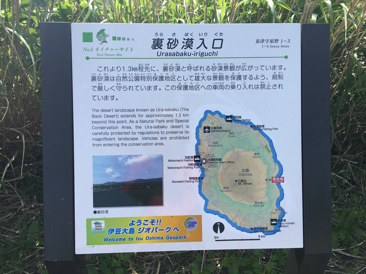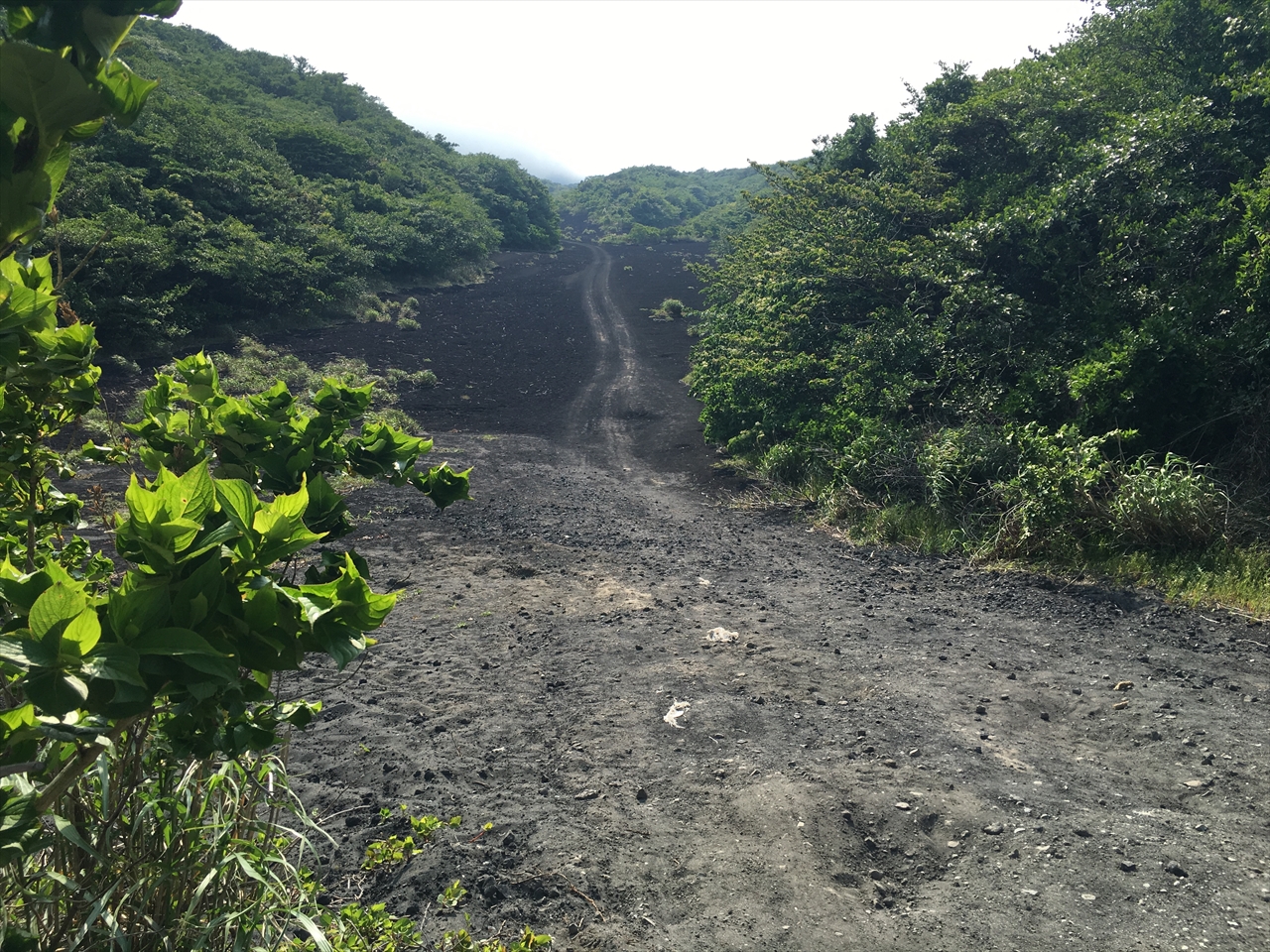 そして三原山の噴火口が見えるあたりからは特別保護地区となり、自動車・バイク・自転車の乗り入れは禁止で、ここから先は徒歩のみとなる。