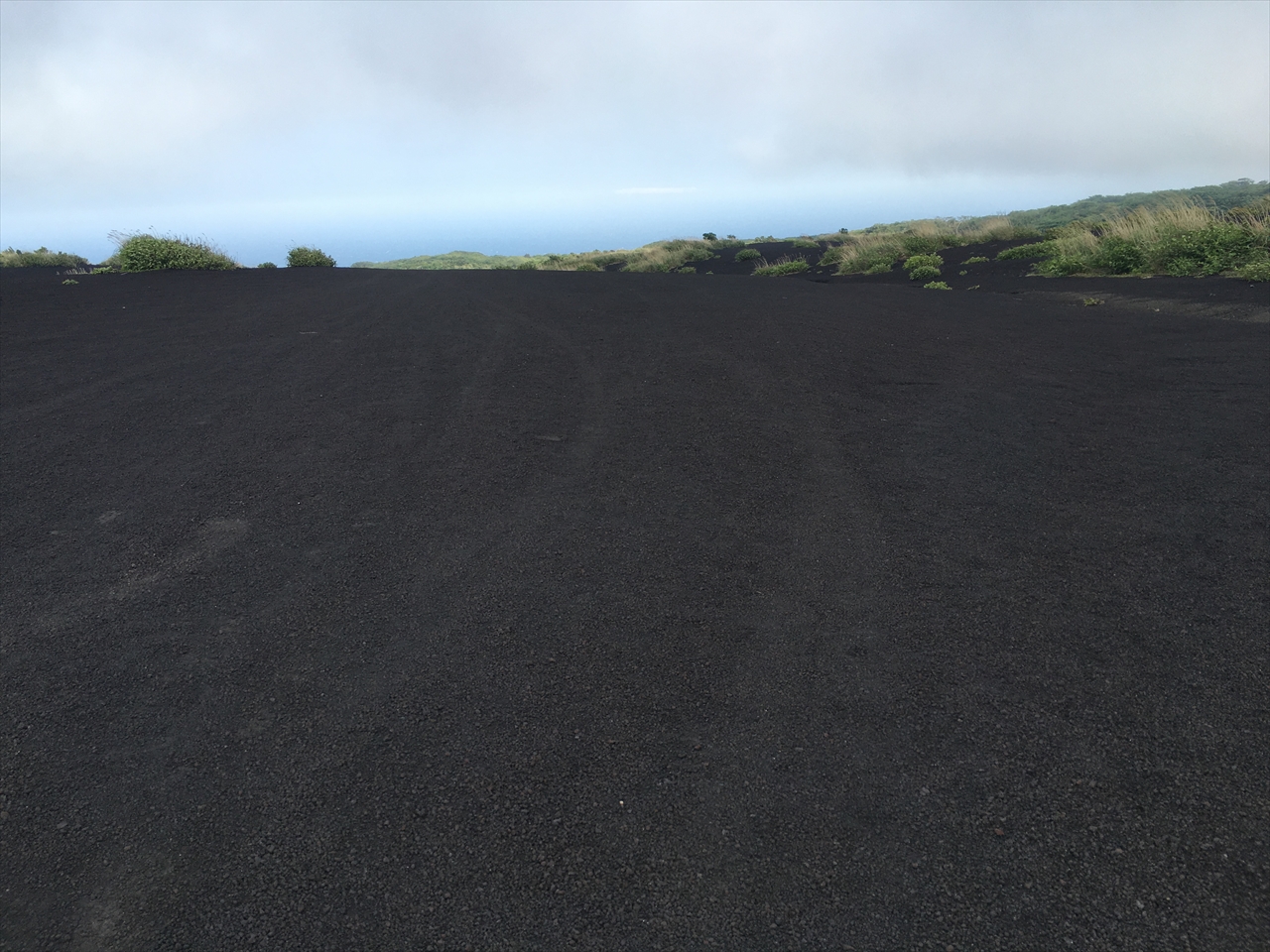 そんな三原山噴火口の東側に広がっているのが、過去何度も爆発した三原山の火山灰や溶岩の粒、砂礫が堆積してできた真黒な「裏砂漠」。
