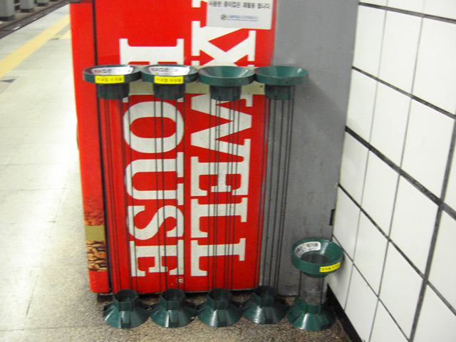 ≪CHECK≫紙コップを回収するもの 地下鉄のホームの自販機横にあったもの。上部から紙コップを入れると、6本の細いポールの間をすとんと落ちて最下部のトレー上に着地。まっすぐ落ちるので、前に捨てられた紙コップの上にきれいに重なるという仕組みだ。腰ぐらいの高さがあるので、相当な数を回収できるだろう。単純に穴から捨てるゴミ箱タイプでは、重ならないのですぐにいっぱいになってしまう。 なかなかナイスだなあと思ったアイテム。 成田空港─ココナツカレー ソウル到着─早くも満腹 カジノな夜 動きやすいソウルの地下鉄 切符を買って、初めて乗る韓国の鉄道 鉄道の旅 初めて目にする北朝鮮との国境 金村の街歩き ≪CHECK≫紙コップを回収するもの ≪CHECK≫公衆トイレの石鹸 キムチ作りました 水原(スウォン)に来ています 昨日ソウルから帰国 前の記事 次の記事 コメント コメントする コメントする 返信する コメント 名前 電子メール URL サインイン情報を記憶