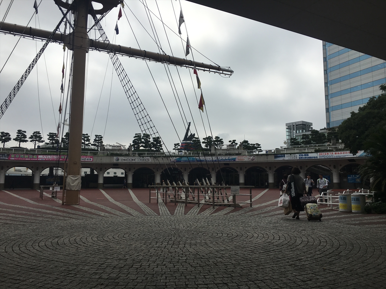 最寄駅はゆりかもめ「竹芝駅」。竹芝駅に到着する直前に右側の窓から見える大きなマストのオブジェがある円形広場がそうだ。