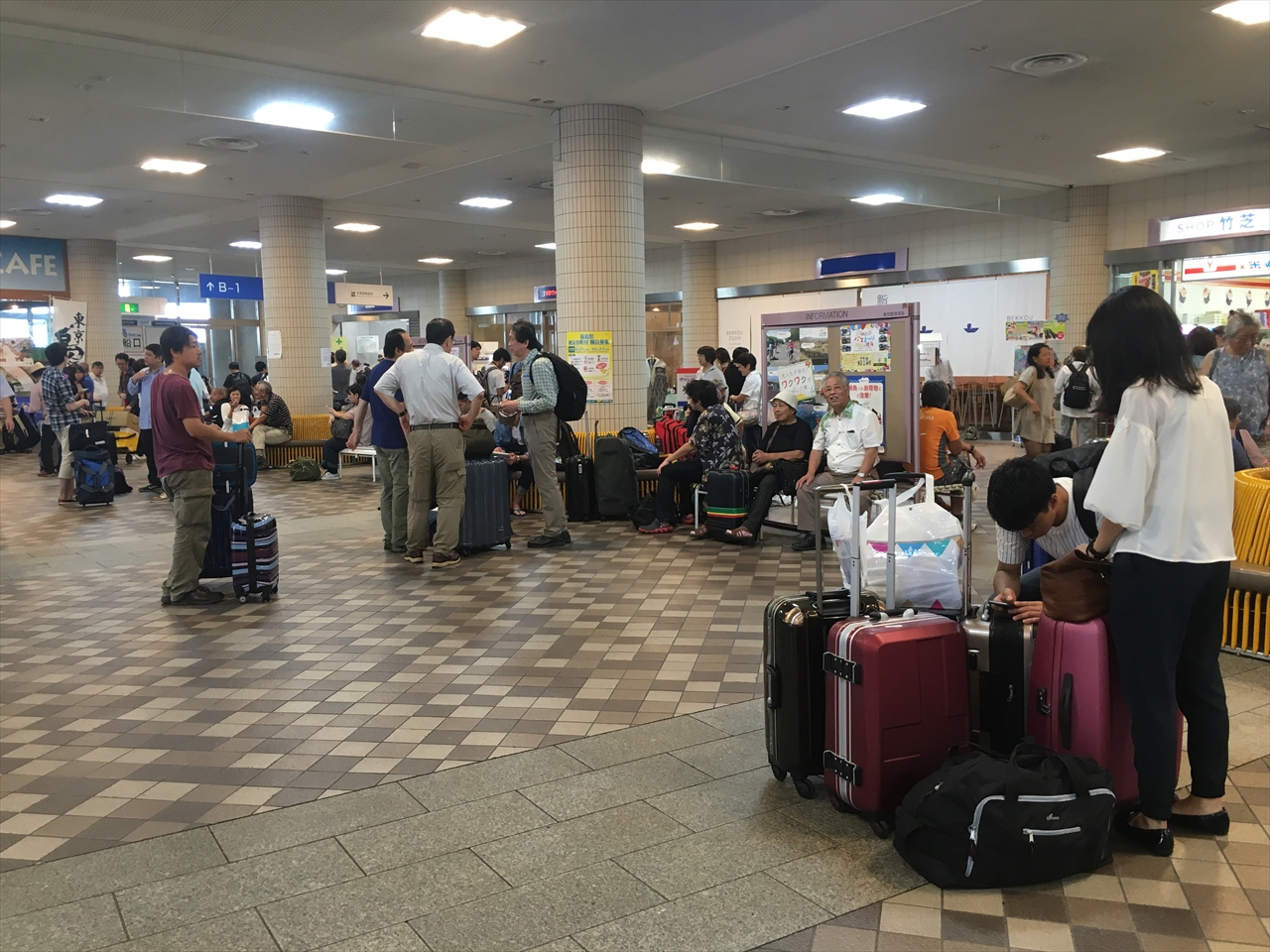 10時過ぎに到着すると、スーツケースを持った人達で大賑わい。まるで空港のようだ。ざっと見て、スーツケース+デイパックという人が多い。船内泊も含め5泊6日なので荷物もそれなり増える。ダイビング機材や釣り道具を携えている人も多い。