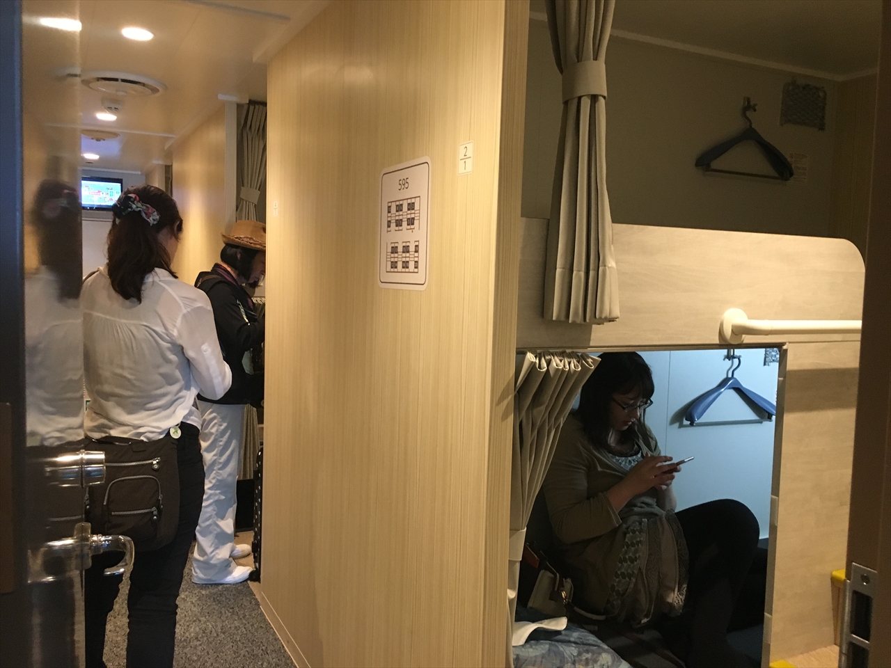部屋にわかれていて、それぞれの部屋の中にカーテンで仕切られる上下二段のベッドが並んでいる。