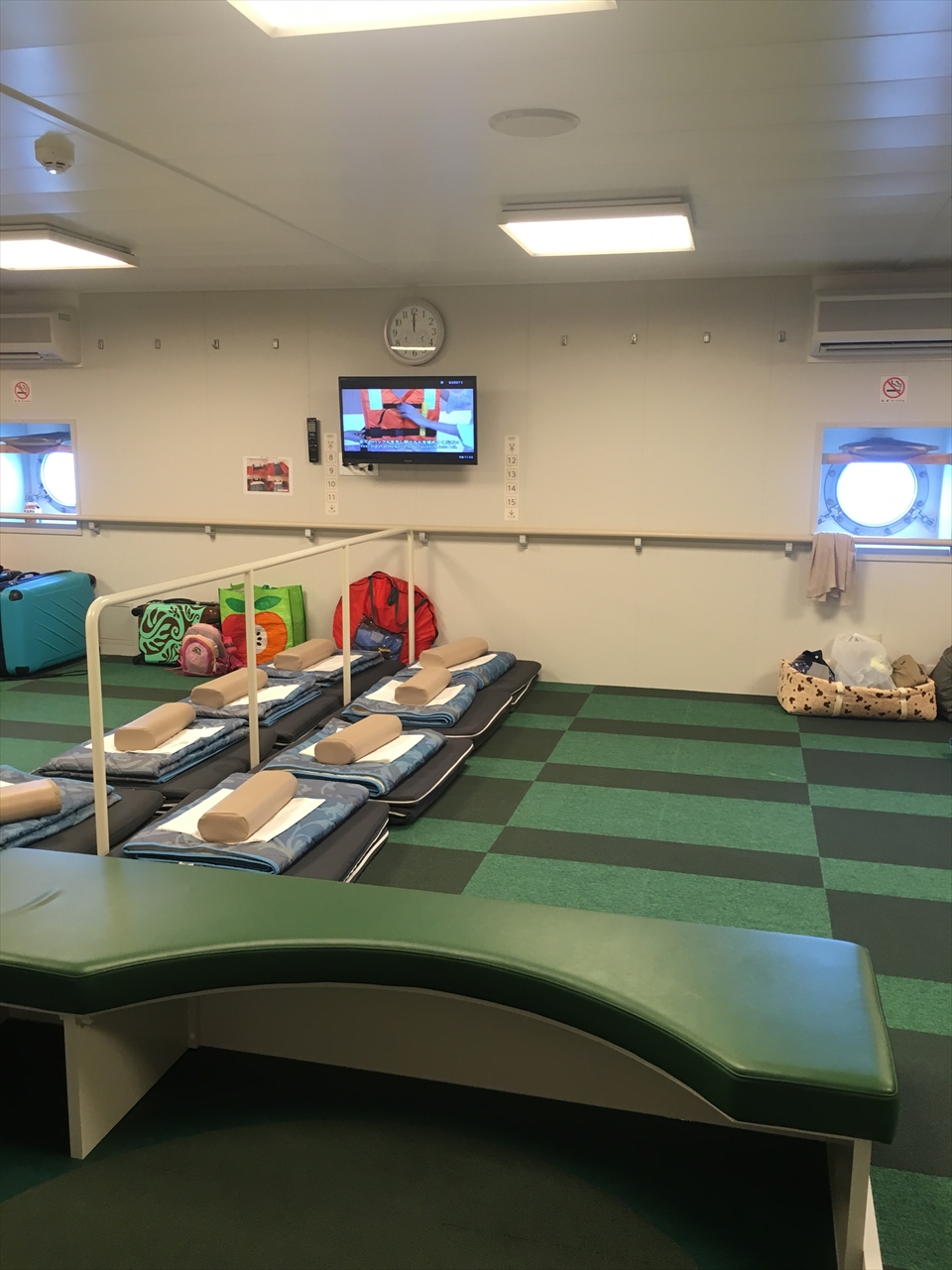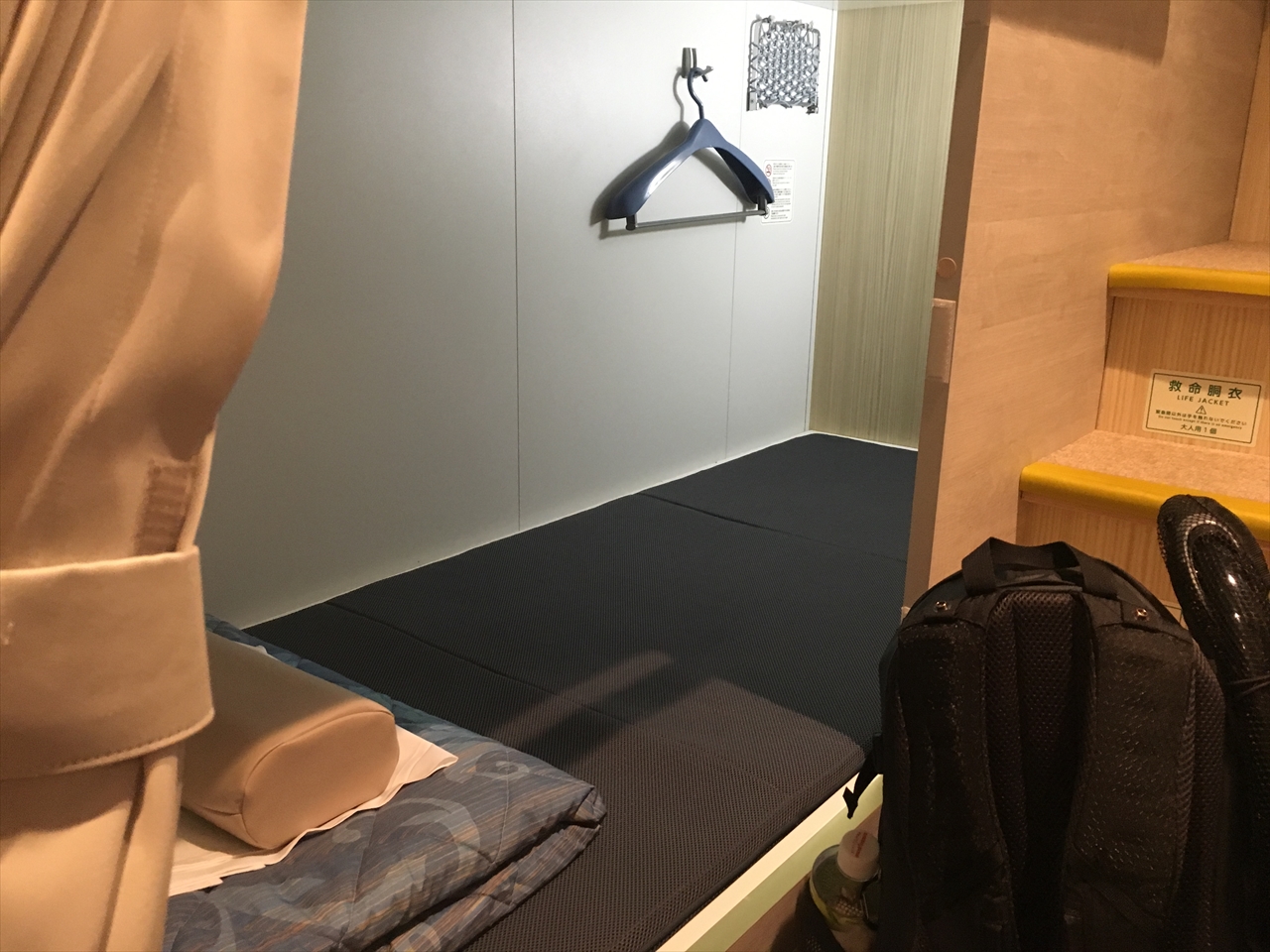 マットや布団などは一緒だ。公式サイトに掲載されている2等和室の写真では枕元に仕切りがあるので、ファミリータイプというのはそれがない部屋なのかもしれない。