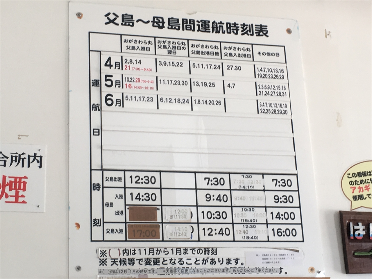 ははじま丸の運航スケジュールはちょっと複雑で、おがさわら丸に合わせ6日周期だ。