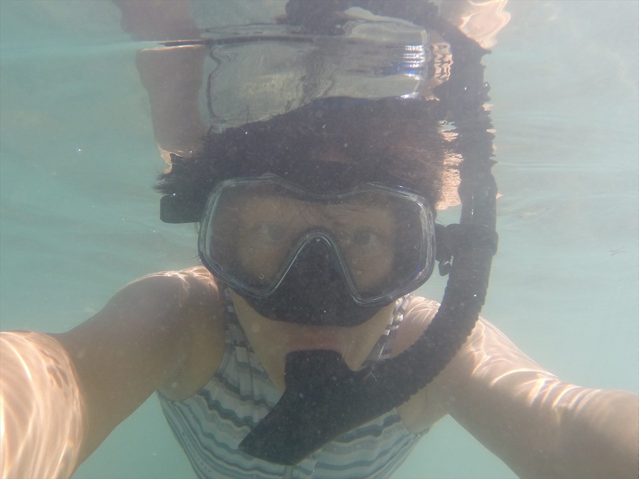 ただこの日は、南方で発生した台風の影響もあり波がかなりでており、入り江の中も透明度が落ちていた。