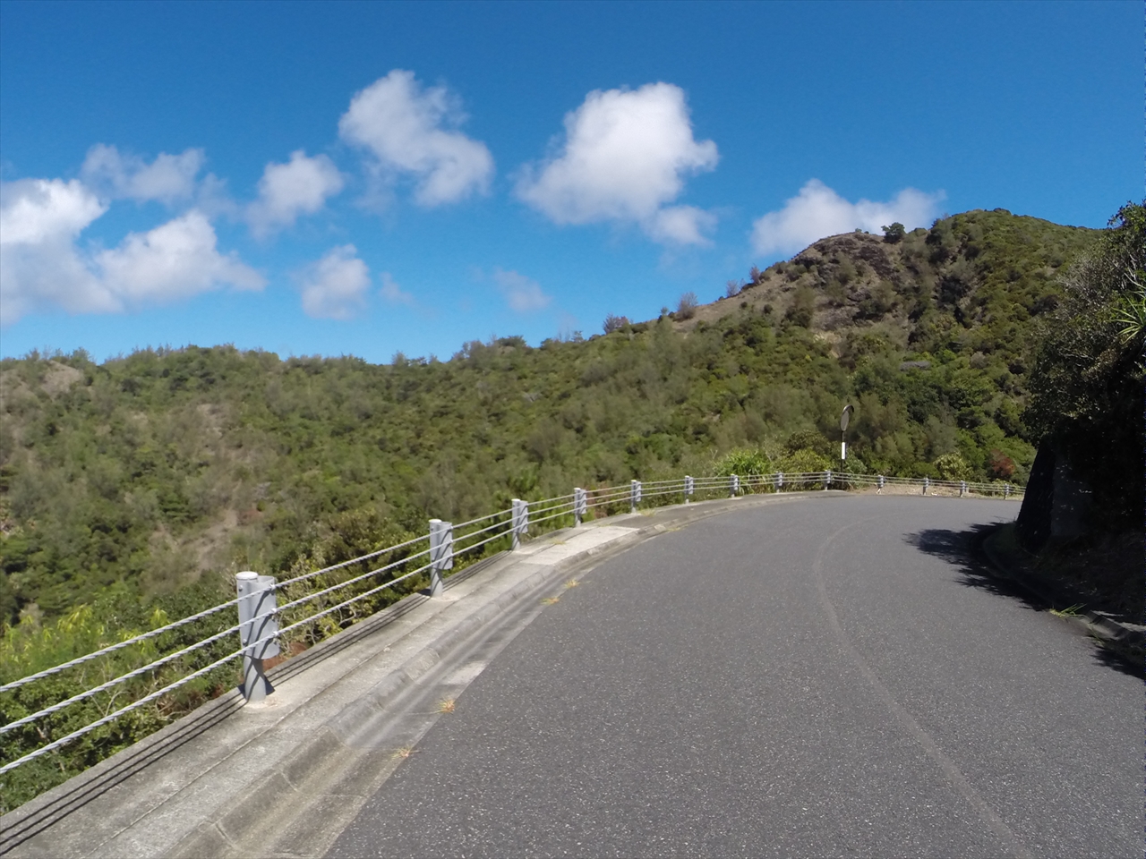 一時間ほど宮之浜で泳いだ後、再びバイクに乗って島一周ツーリングに出発!島の北部東側には、いくつもの展望スポットがある。
