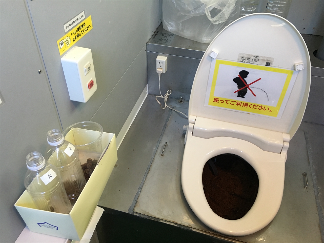 ちなみに大小どちらの用を足したか、空きペットボトルに木の実を入れることで申告する。利用回数が一定になると、おがくずの入替など何か作業が必要になるのだろうか。