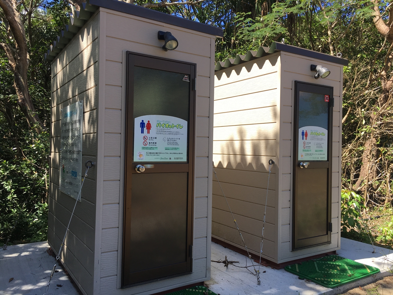 初寝浦展望台は、都道沿いに小さな駐車場とトイレが設置されている。このトイレが、父島・母島に何か所かあるバイオトイレ。