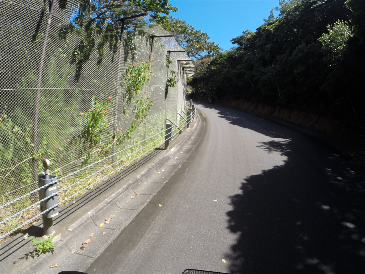 都道240号の東側の道は、島の中央部に並ぶ山の頂上付近をつなぐように走っている。途中には宇宙航空研究所の施設も。種子島で打ち上げた人工衛星打ち上げ用ロケットの飛行経路などを追跡するための施設とのこと。