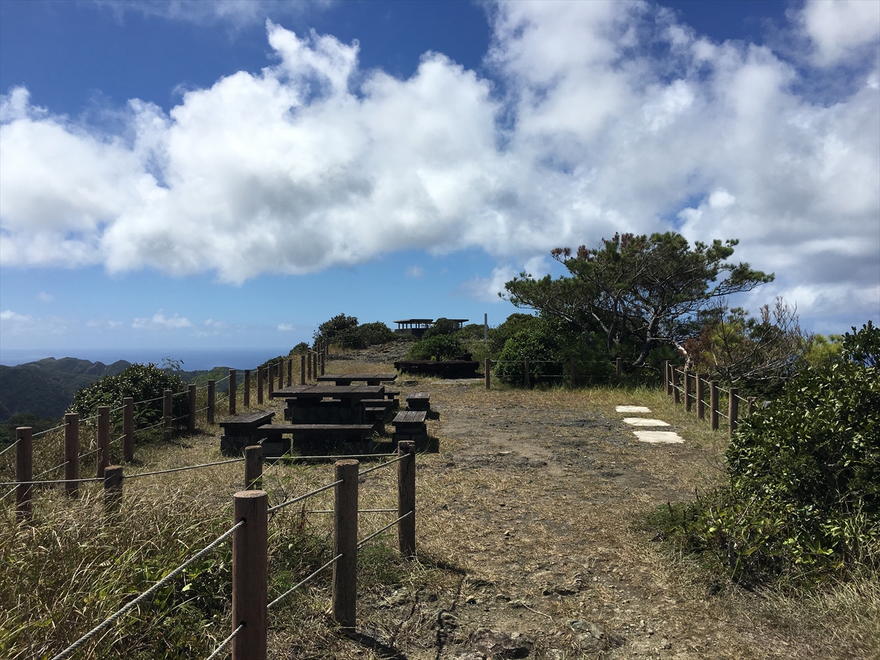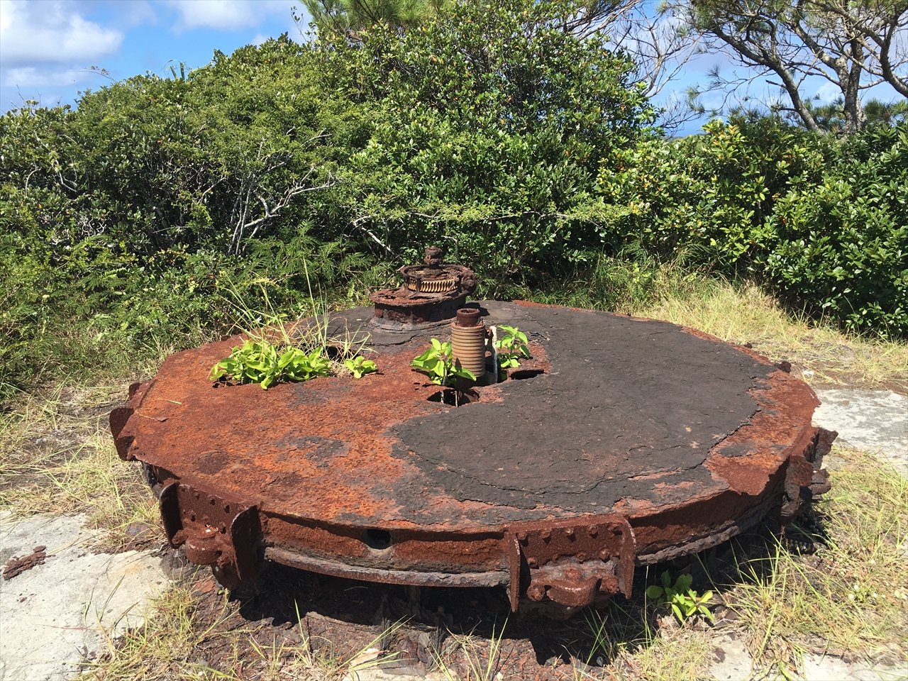 頂上に残る、真っ赤に錆びた円盤状の金属は、旧日本軍が設置した電波探信儀の基礎とのこと。