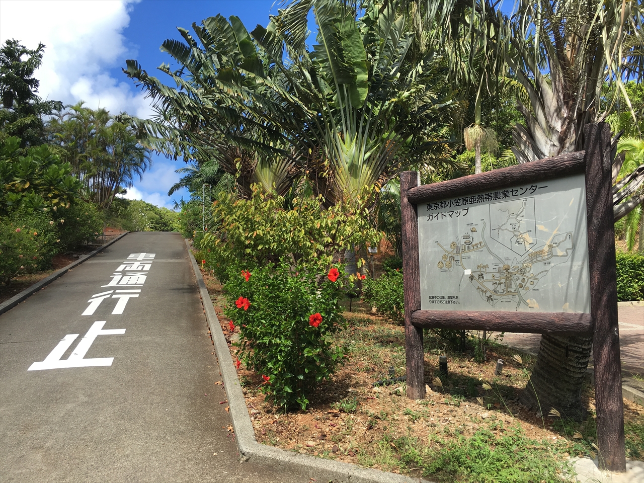 父島循環線こと都道240号をぐるり一周する際、南のちょうど半分くらいのところに小笠原亜熱帯農業センターがある。ナイトツアーでオガサワラオオコウモリを見に来たのもこの場所だ。特に入場料などもなく自由に出入りできるようだったので、昼間もう一度立ち寄ってみた。