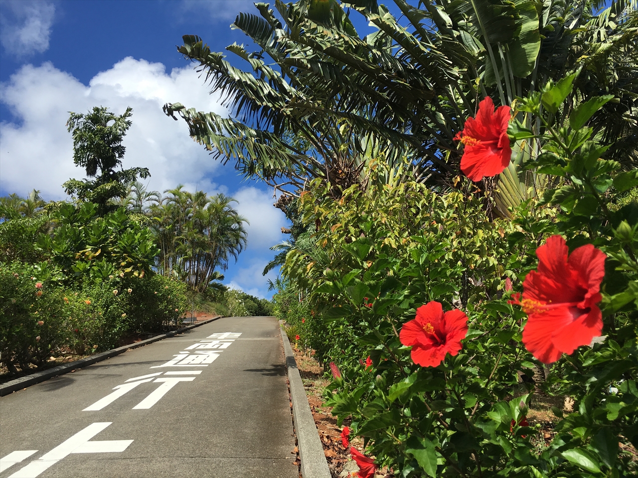 至る所に咲き誇るハイビスカスの花。