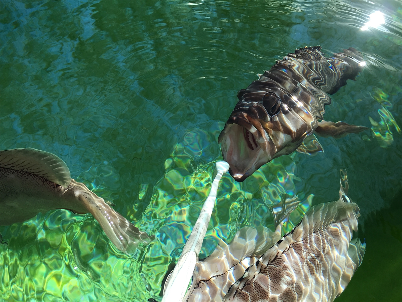 シュノーケリング帰りと思われる女性三人組がきゃーきゃー楽しそうな歓声をあげて水槽の中を見つめているので何がいるのかと思って近づいて行ったら・・・