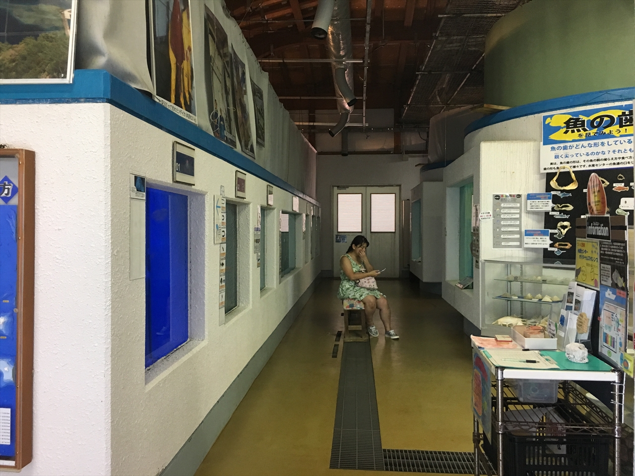 通路の両脇に大小の水槽がずらり並び・・・