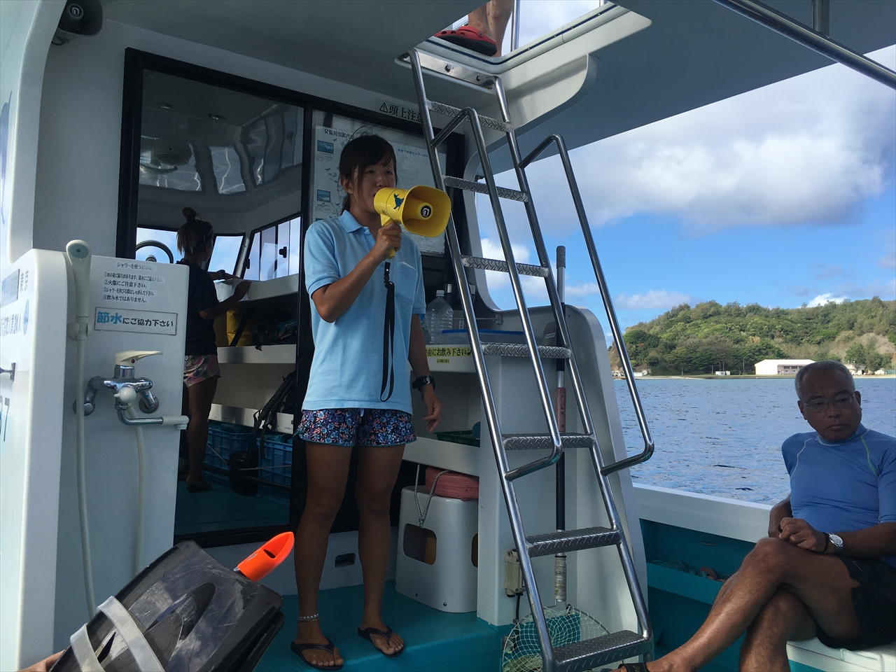 船酔いした人は風向きをよく考えてから海に吐くこと、イルカと泳ぐときのルールなど、細かな注意点がスタッフから伝えられる。南島上陸は、波の関係で難しいかもしれないということも。実はここ数日、南島には上陸できていないのだという。
