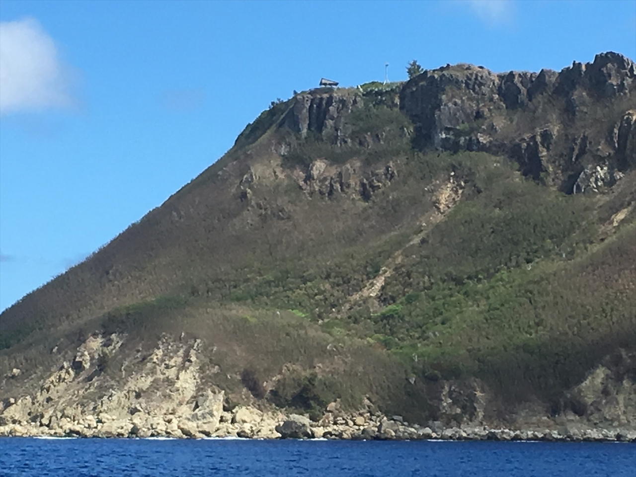 南島は石灰岩からなる沈水カルスト地形の島。切り立った崖に囲まれた無人島で、上陸するためには南側の入り江の中に入り岩場を伝っていく必要がある。桟橋がないのでちょっと大変らしい。