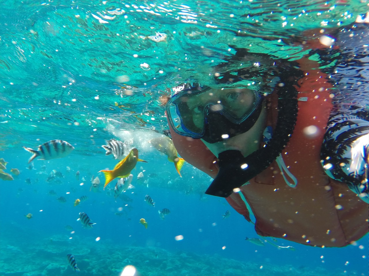 島からちょっとのところにボートを停泊し、岸とボートの間で熱帯魚三昧。