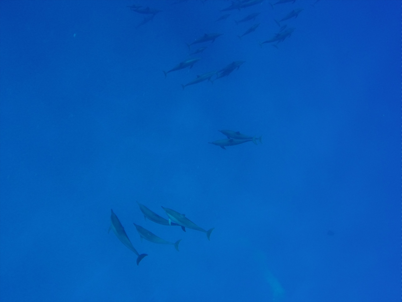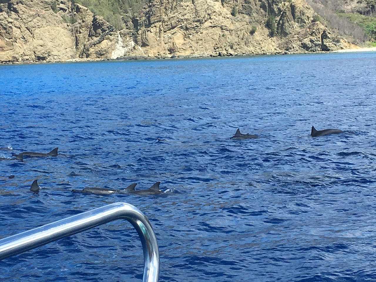 不慣れな自分はなかなかタイミング合わず、浮上してきたイルカの近くにはいけず、また素潜りも自信がないため海面からただ下を見下ろすのみ。今度いつか、素潜りをちゃんと練習してみたい。