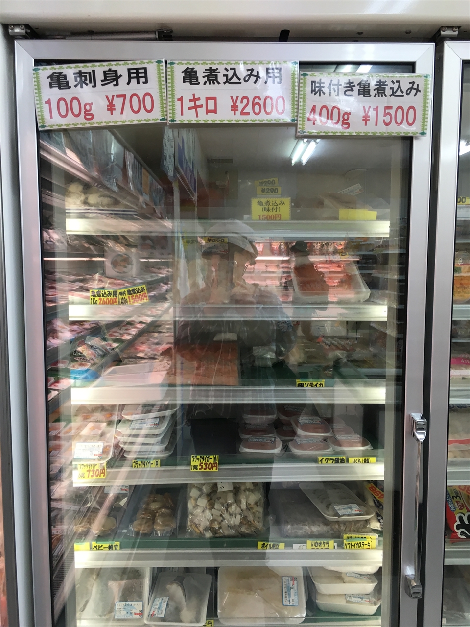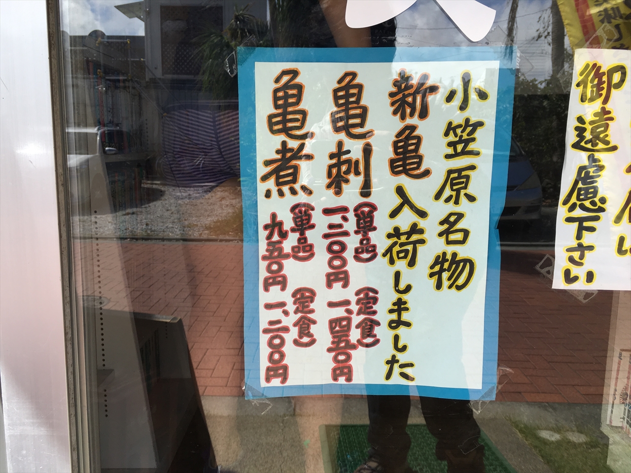 ここは夜は食堂兼居酒屋として営業しており、亀の煮込みや刺身をだしている。