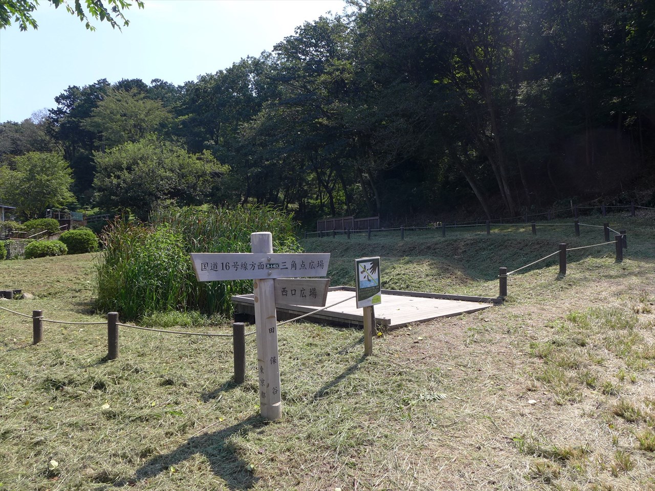 奥のほうに一台自転車が停まっていたが、どうやら遊歩道から尾根のほうに向かった人のものらしく、人影はまったくなし。